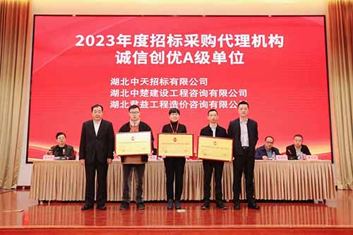 我司在湖北省招標投標協(xié)會組織的“2023年度湖北省招標采購代理機構(gòu)誠信創(chuàng)優(yōu)評級"活動中,獲得了"招標采購代理機構(gòu)信用評價A級信用企業(yè)”稱號。